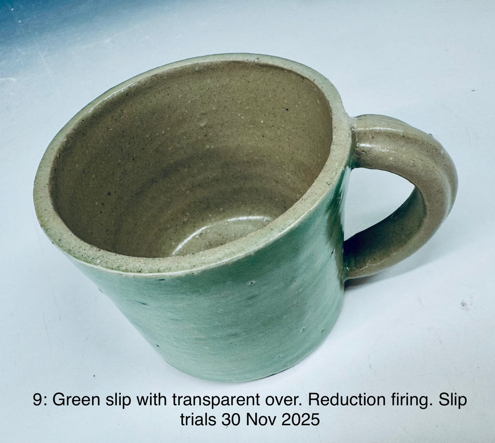 First attempt investigating the use of slips on leather hard stoneware.